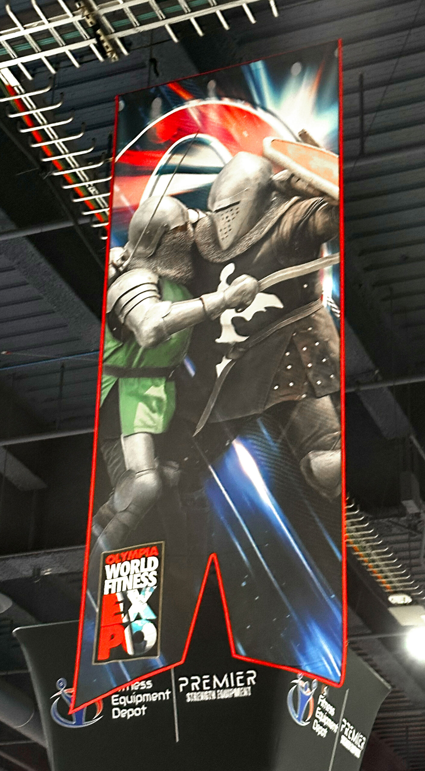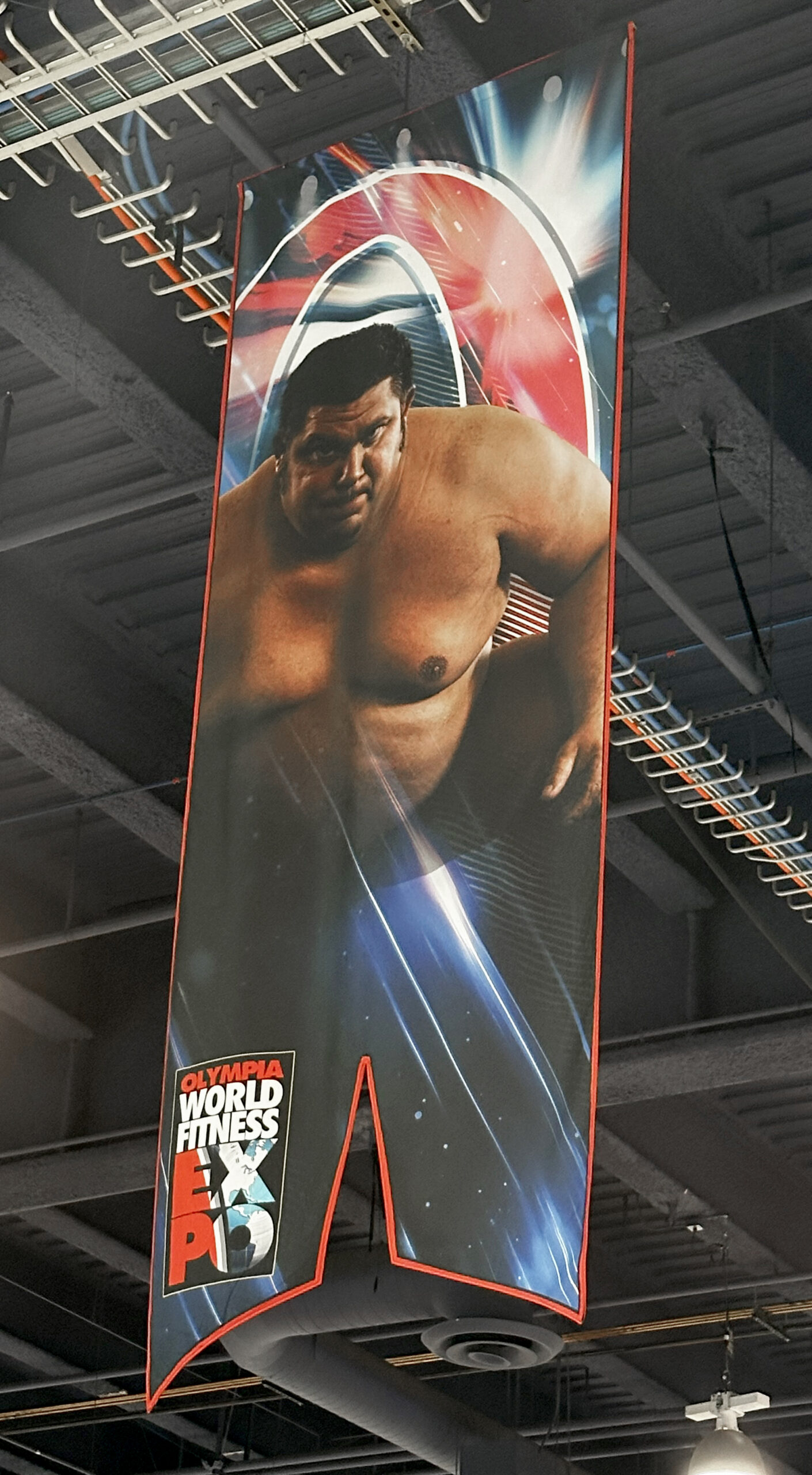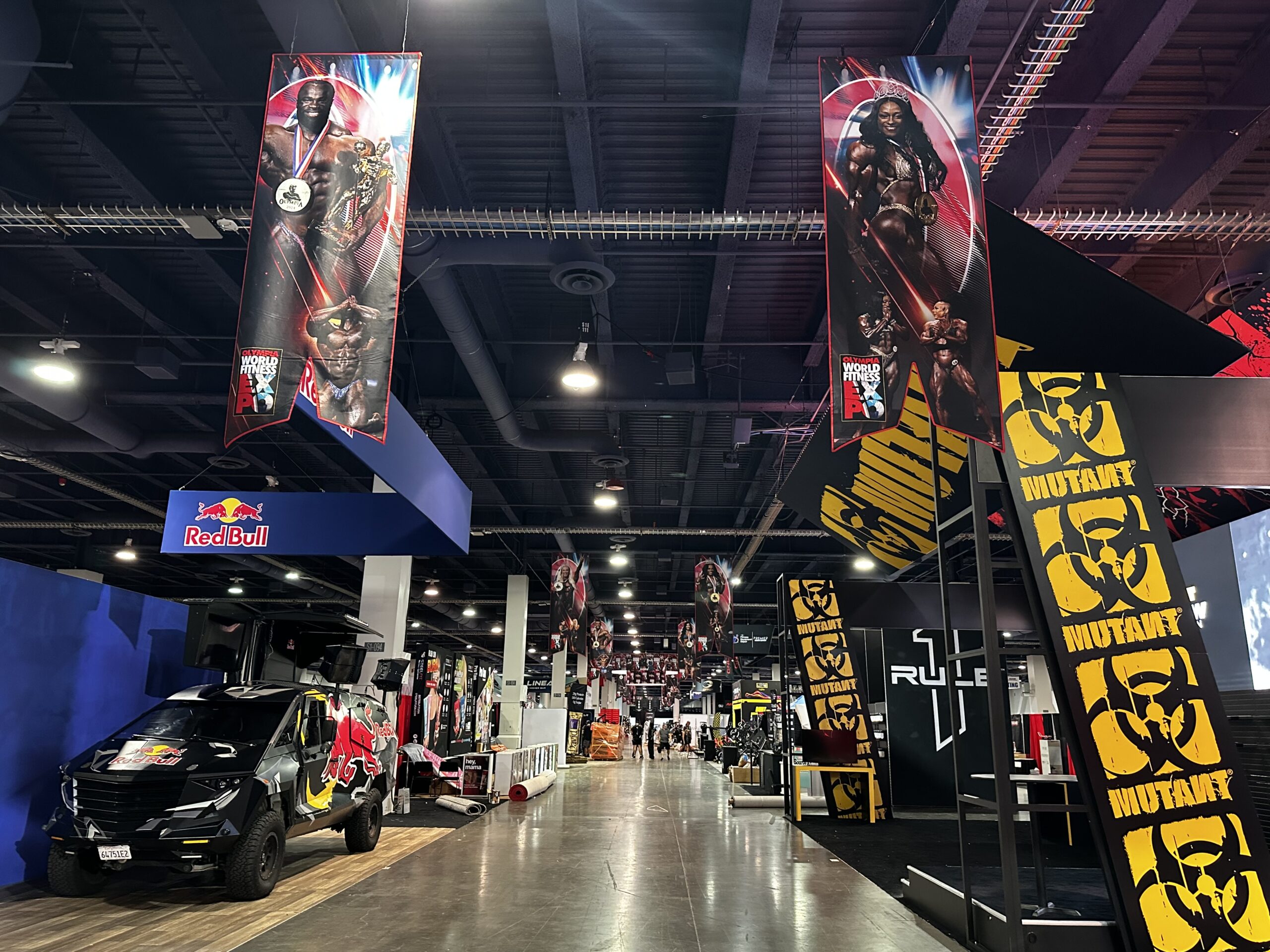 The Olympia Expo presented a massive, underutilized vertical space—approximately 50 feet from floor to ceiling—stretching the length of the main aisle, nearly three football fields long.