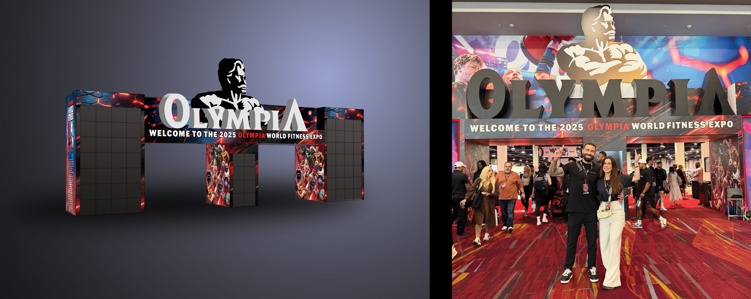 The final result delivered exactly what it needed to. The entrance became a strong visual anchor for the expo, reinforcing the Olympia brand at scale and setting the tone the moment attendees arrived. It handled real-world conditions without breaking down visually or functionally, even with the volume of traffic moving through it. The branding came through clearly and consistently, and the overall impact was exactly what we were aiming for. From both a visual and experiential standpoint, it succeeded. It didn’t just look good. It worked, and it elevated the experience.